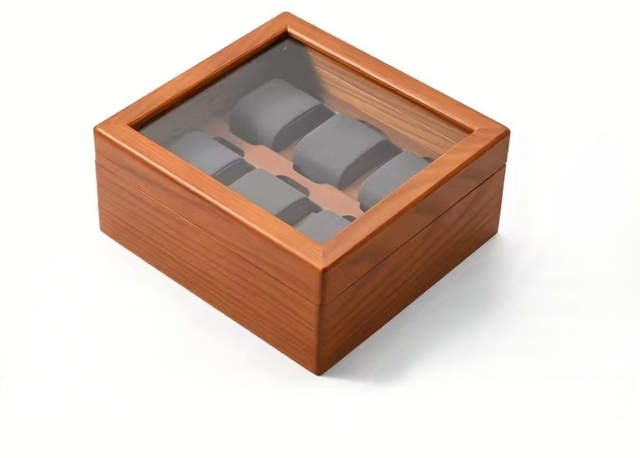 Scatola porta orologi in legno massiccio da 6 posti.